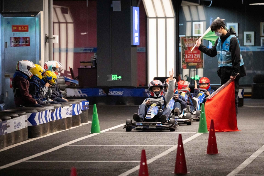 在卡丁车项目中,GPKS卡丁车俱乐部的教练团队打造了“认知、实操、竞技”的进阶课程。从讲解车辆构造与安全知识,到练习绕桩等驾驶技巧,再到解锁全赛道并组织小型竞赛。“每次近2个小时的课程里,还会融入核心力量训练,我们会建议孩子把训练方法带回家坚持练习。”俱乐部运营经理顾飙介绍,学生通常三节课就能自如驾驭车辆。